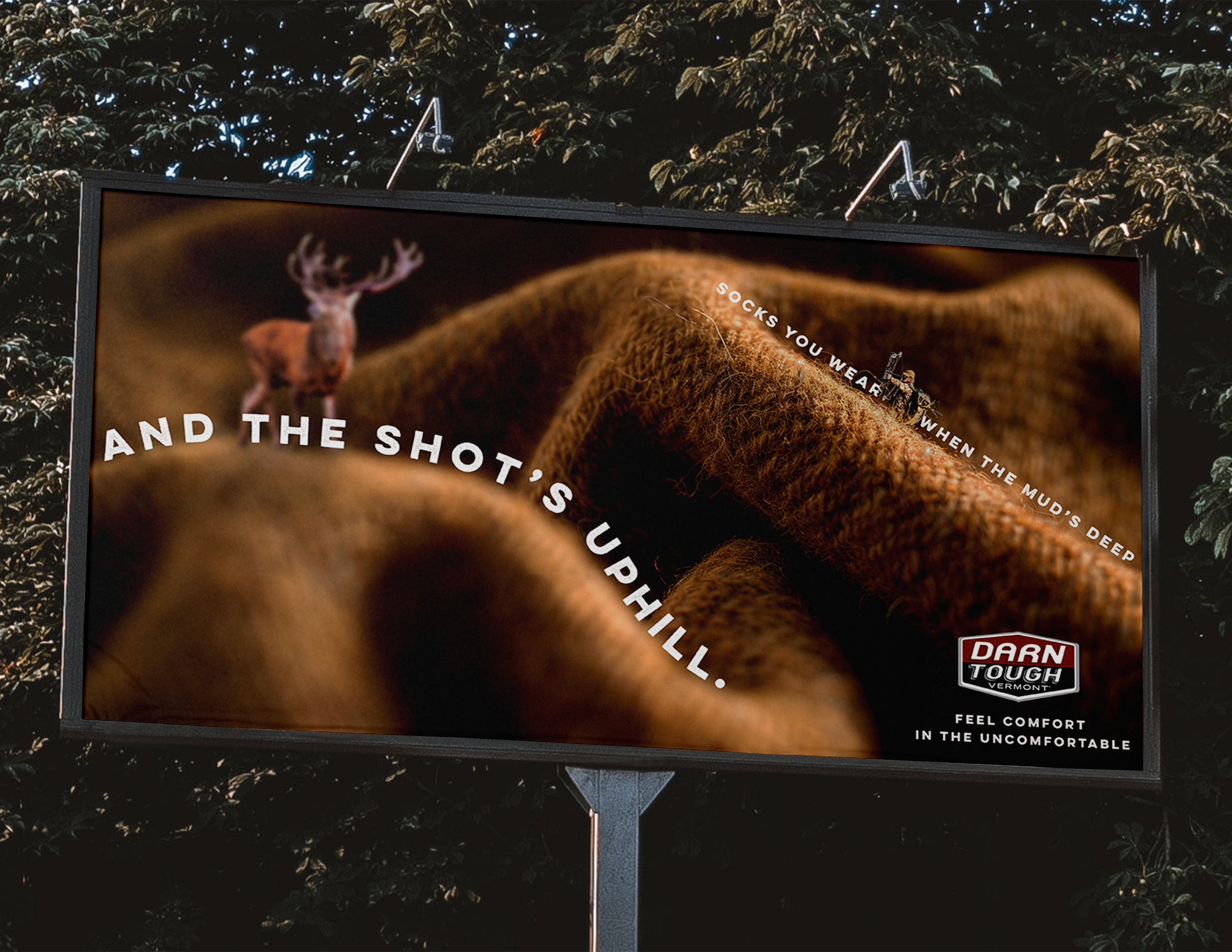 As many people going hunting will head out into the woods, we placed a hunting billboard highlighting what Darn Tough can handle.